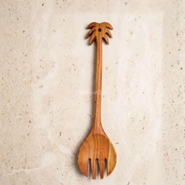 Elevate your table with this handcrafted almond wood salad serving set, designed to bring natural elegance and functionality to your dining experience. This unique set includes a beautifully carved serving spoon and matching fork, perfect for serving salads, pasta, and a variety of dishes with style.