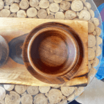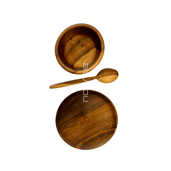 •Includes 1one wooden bowl, one matching spoon, and one serving plate